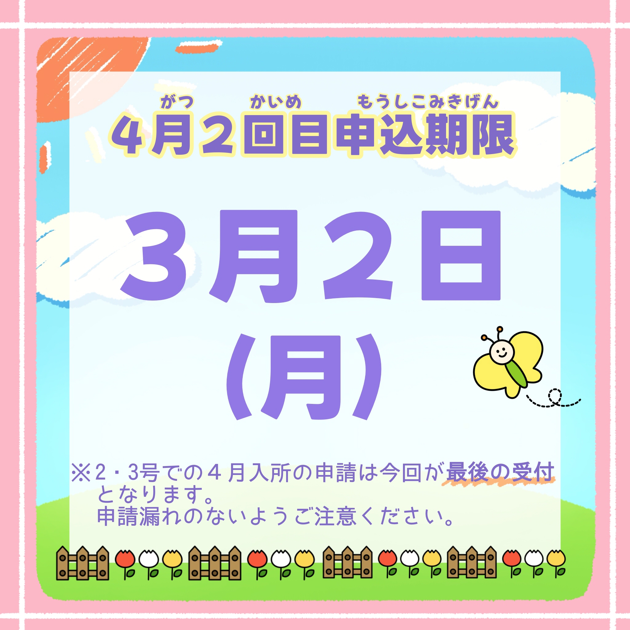 ※2・3号認定での4月入所申請は今回が最後です。