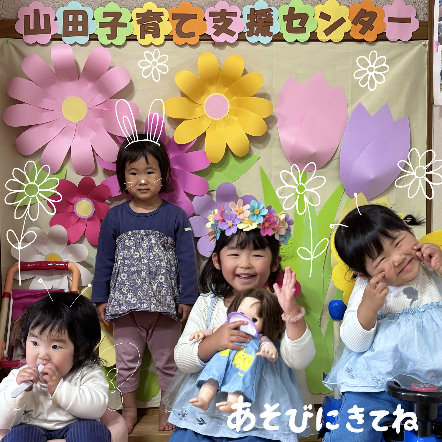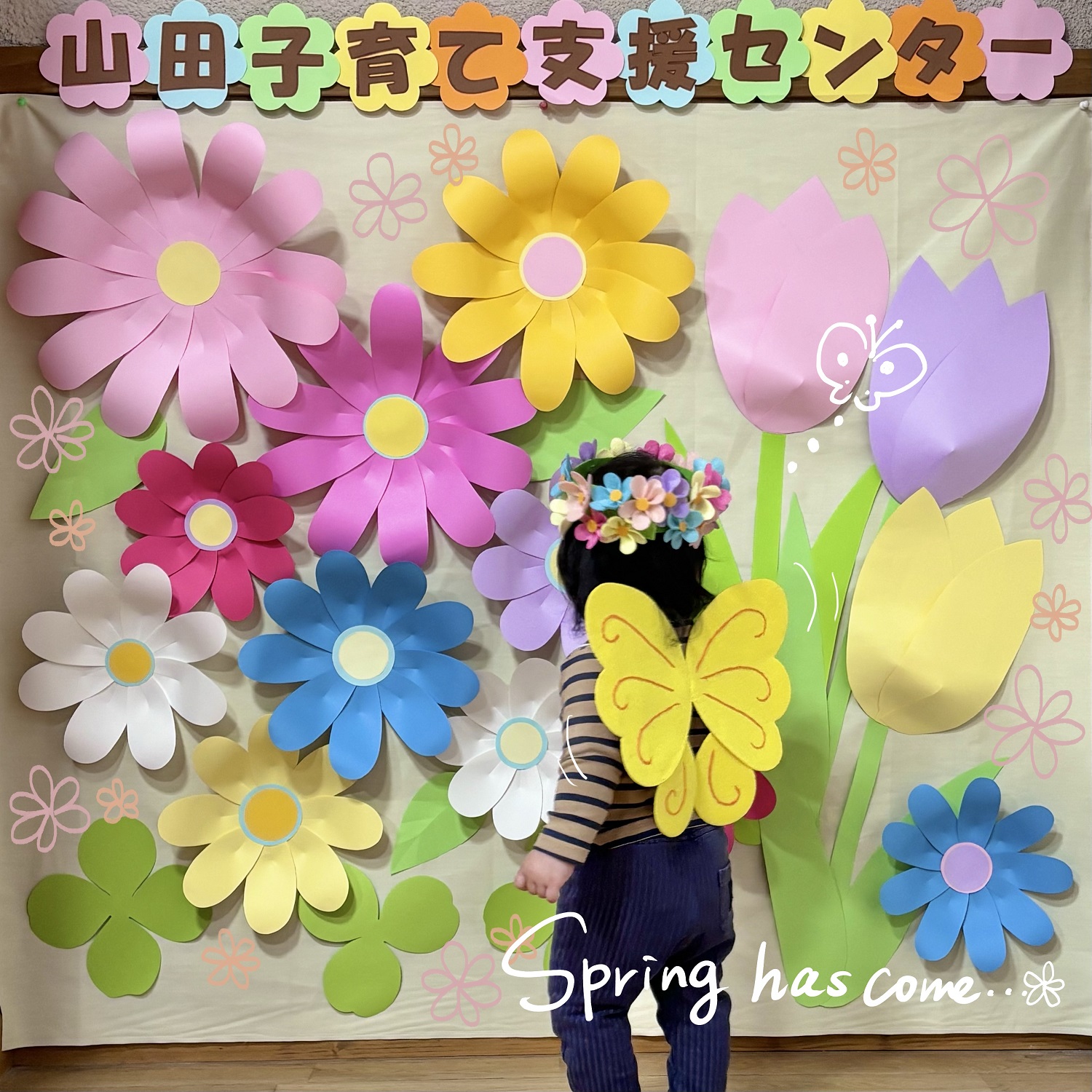 山田地域子育て支援センターに、春のお花をモチーフにしたかわいいフォトブースが登場しました!✨